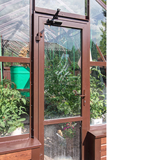 В теплице используется стекло или закалённое стекло, предназначенное для тепличных конструкций. Закалённое стекло проходит термообработку, что повышает его прочность и безопасность. Материал отлично пропускает солнечный свет, не мутнеет со временем и не искажает спектр освещения.